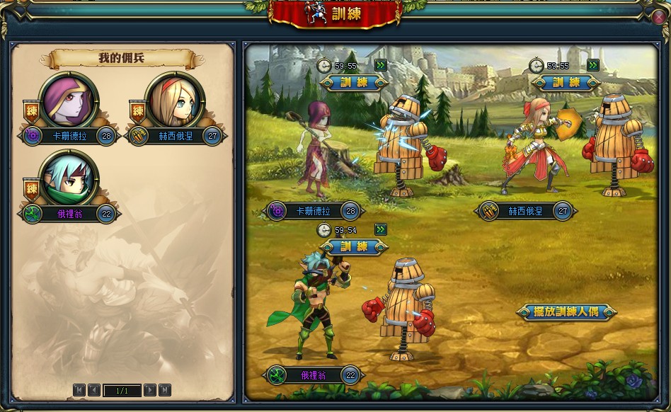 想要一舉打敗黑暗勢力可不是輕鬆的事,如果沒有每天持續的訓練自己的實力,並參加一場又一場的戰鬥,是很難在守護女神的路上前進的。所以當玩家將自己喜歡的英靈納入旗下後,除了要將他們安排上陣外,最重要的還是對他們加以訓練。玩家可以開啟訓練介面,將需要提升等級的英靈送去與訓練人偶進行練習,就能快速的提升等級。
