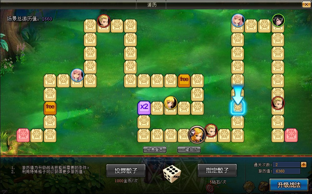 此外想要強化這些戰法技能,就需要通過遊戲中特別的遊歷系統來取得遊歷值,遊歷系統是類似大富翁的棋盤式玩法,玩家執骰後會發生不同的事件,這些有趣的事件將會給予玩家高低不等的遊歷值,讓玩家能夠加強戰法技能,使出更加華麗且強大的特殊技能,所以有空時千萬不要忘了來擲骰子試試手氣喔!