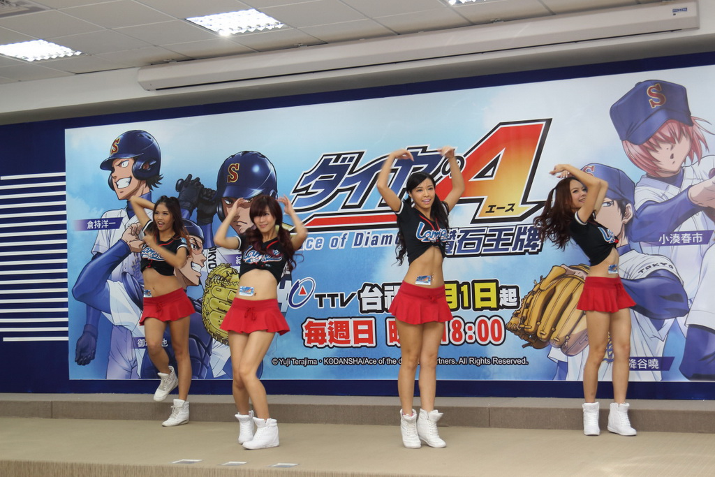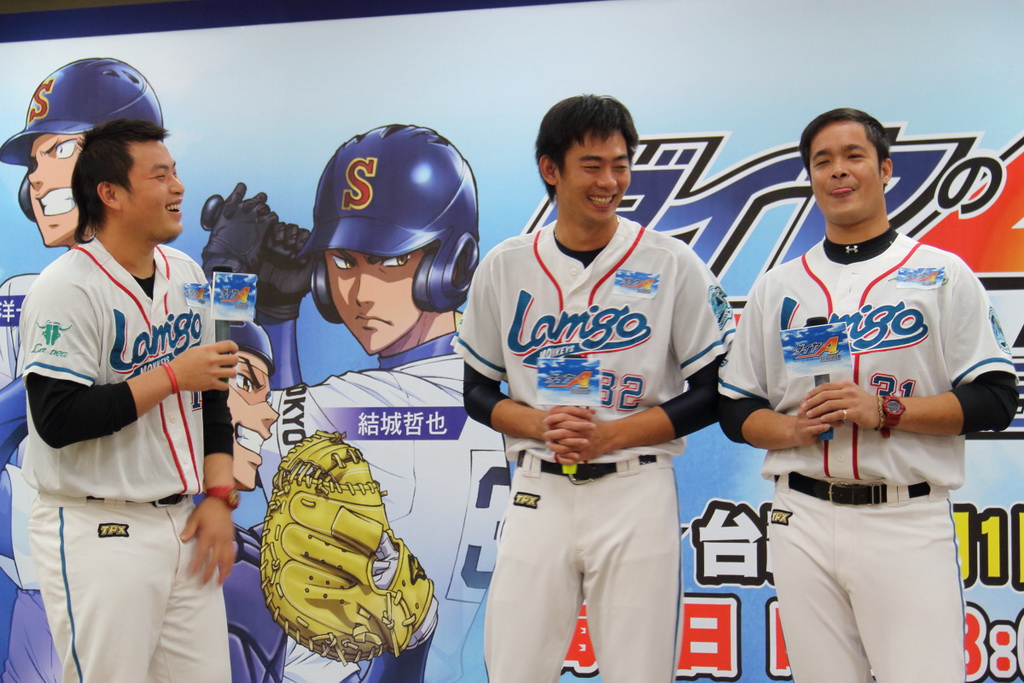 在記者會上,以中職年度啦啦隊 LamiGirls 精彩的棒球舞開場。同樣身為投手、與主角澤村榮純同樣都是左投的王溢正表示:「片中投手榮純由於一次爆投,導致潛意識裡無法投內角球,但後來克服了心理障礙、終於成功。球員必須不斷突破自己的極限,箇中心酸,只有自己最清楚,這個段落讓我感觸良多。」捕手林泓育則對片中天才捕手御幸一也的一句話印象深刻:「最完美的投球,是由投手和捕手攜手合作所創造出來的藝術品」,雖然知道投捕之間的默契相當重要,但當被用的「藝術品」來形容,讓他對棒球有更深一層的體會,也進而對這部作品更有興趣。林智勝則分享了多年棒球生涯心路歷程,讓現場氣氛既熱鬧又溫馨。三位明星球員更和現場粉絲進行了一場「Q 版棒球對抗賽」。