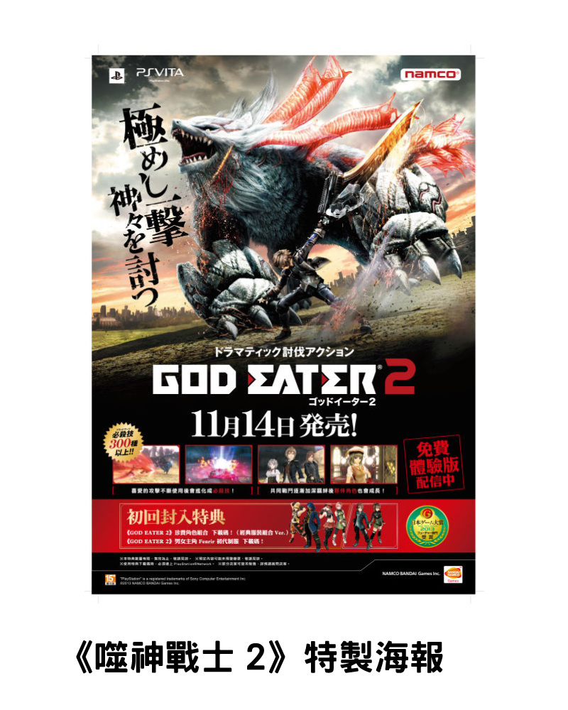參與活動的玩家皆可獲得遊戲海報與特製明信片組,還有機會獲得特製徽章、特製T恤與特製資料夾等限量贈品。從猜拳大會勝出的玩家則可獲得最大獎的新型 PS Vita 芬里爾主機同梱包。