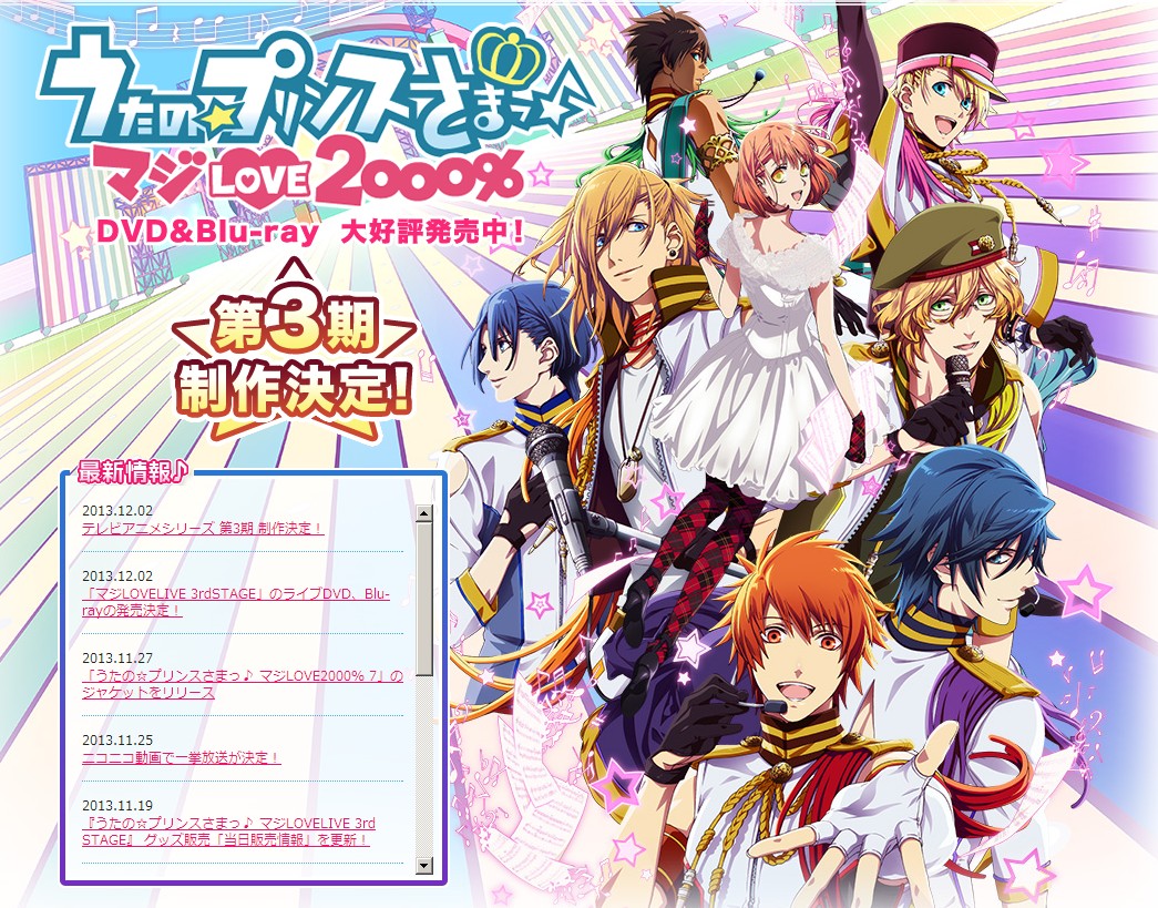 以女性向戀愛遊戲為原著的人氣電視動畫《勁歌貴公子》,正式宣布將於 2015 年推出第三季的電視動畫。