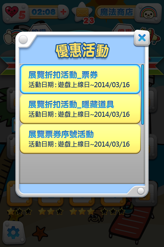 遊戲配合展覽展期進行不定期更新活動!目前先推出了三個活動!