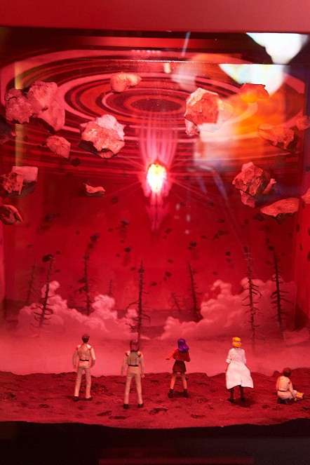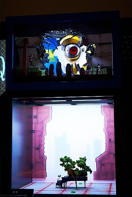 海洋堂模型博物館的代表 Hataoka 說,「策展人邀請我們參加日本刀展,而且還讓我們在同一時間展出自己的系列」。透視畫的概念是「在盒子裡展現出有趣的空間」,每個透視畫平均都花了二到三週完成,最快的也要一到兩週(模組是訂製的)。這些透視畫並不是由專業的透視畫工匠進行組合,而是由海洋堂模型博物館員工所進行,每個都讓人印象深刻。