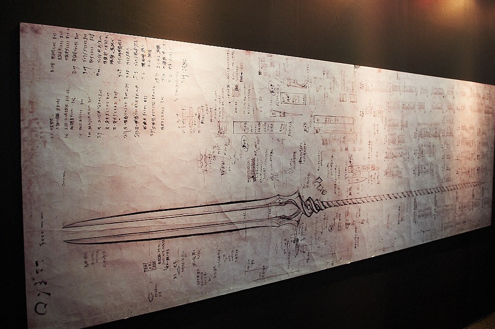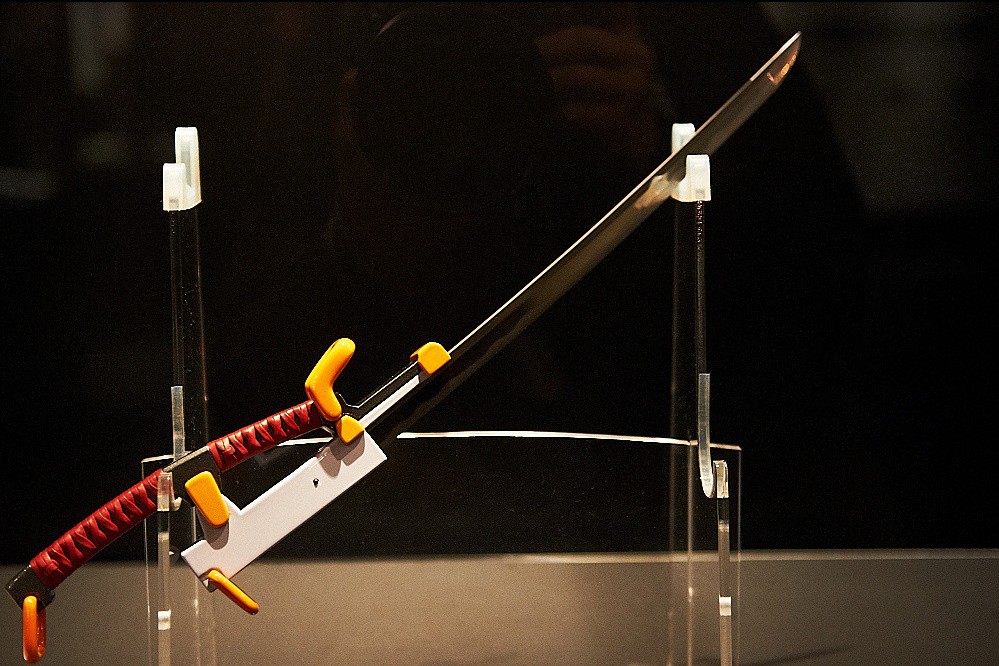 展覽的重點還有朗基努斯槍,這把巨大的日本刀長達 3.32 公尺,重達 22.2 公斤,包括分岔的尖端和螺旋部分。製造過程非常複雜,為了製造這把刀,甚至將一棟房子改建成工廠好配合它獨特的製作過程,同時也運用了新的工具。