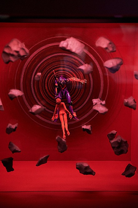 採用在動畫中出現的場景,然後放進透視畫中,包括與使徒的戰鬥、經典的人物動作。看過這動畫無數次的粉絲會很驚訝看到不同的場景,而沒看過透視畫的人一定會大開眼界。和日本刀展同步,有些透視畫當中也有刀劍。Hataoka 對展覽的評價也很高「我真的很希望來到會場的人都去參觀。」