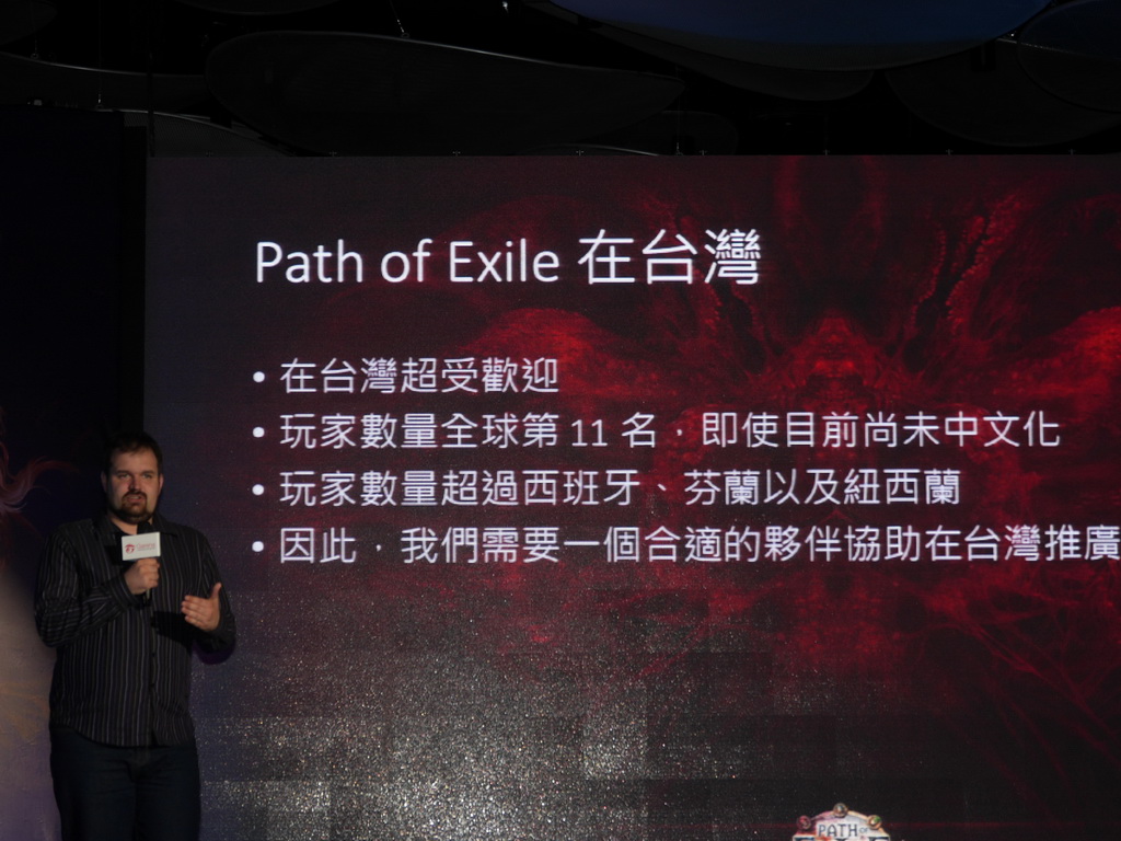 暗黑破壞神 2》精神的遊戲而共同打造這款具有黑暗風格、高度自由打造角色特色的遊戲。Grinding Gear Games 執行長 Chris Wilson 表示,雖然《Path of Exile》尚未中文化,但他們已經感受到這款遊戲在台灣受歡迎程度,這款遊戲台灣玩家數量是全球排名 11 名,超過西班牙、芬蘭與紐西蘭玩家,他們希望藉由與 Garena 合作協助在台推廣,讓更多玩家認識這款遊戲。
