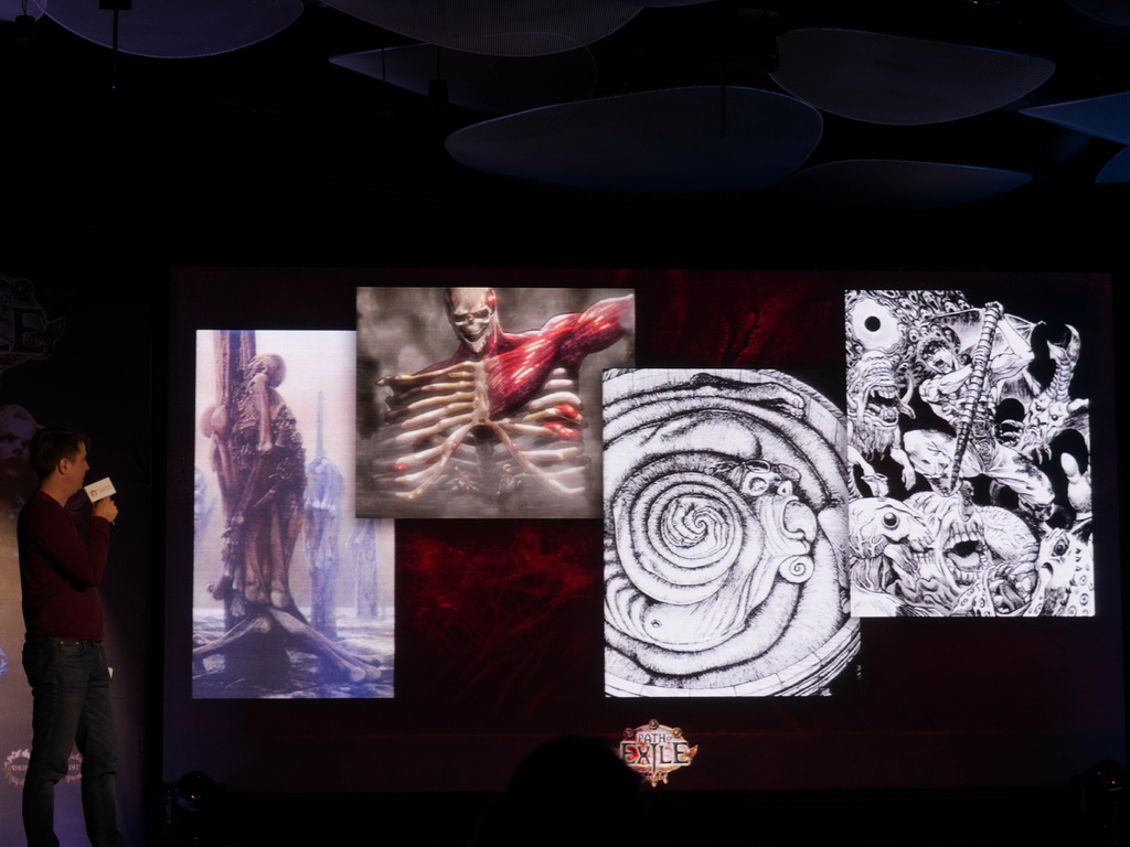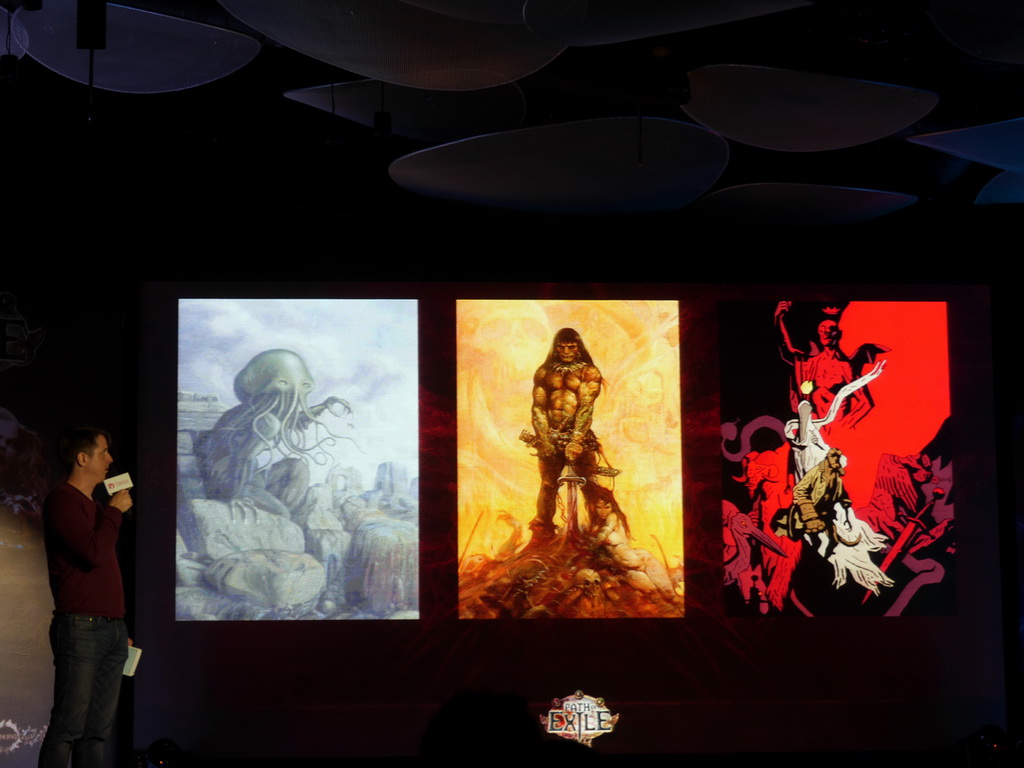 Erik Olofsson 說,《Path of Exile》故事是謎題,玩家在遊玩時將會像剝洋蔥般、越玩越能了解故事中的謎團,而玩家的任何決策都很重要,他們希望打造的是高低起伏的刺激感,玩家下一秒在角落遇到的可能是恐怖的怪物,也可能是很棒的道具。他說,他們參考了眾多作品來發想《Path of Exile》,包括《地獄怪客》、伊藤潤二的《漩渦》,還有像《