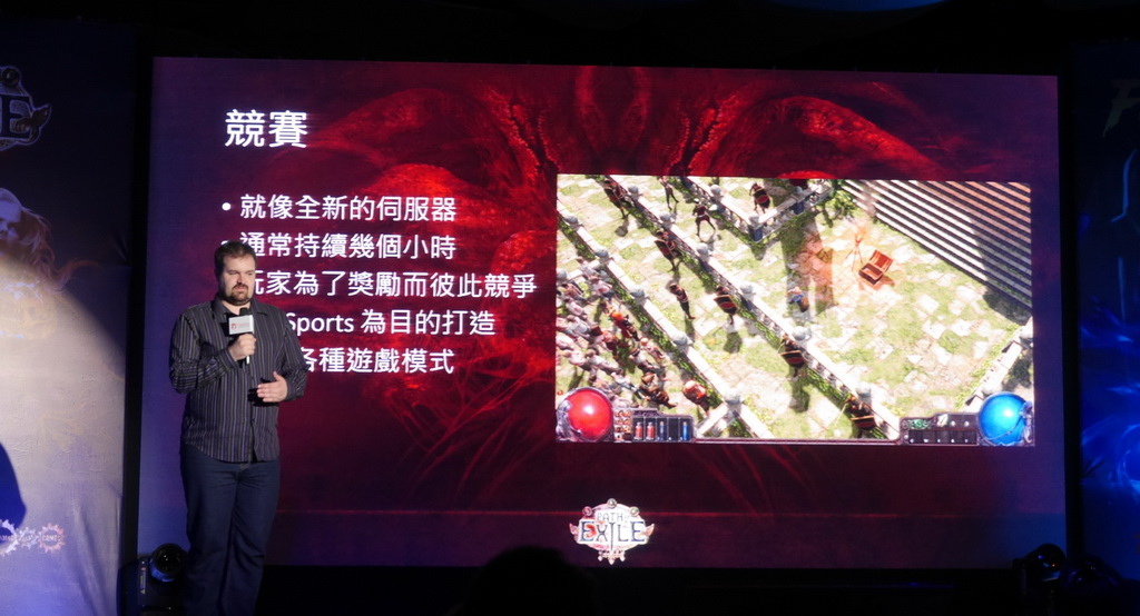 Grinding Gear Games 三位創始人執行長 Chris Wilson、程式總監 Jonathan Rogers、美術總監 Erik Olofsson 共同現身台灣,為台灣玩家介紹《Path of Exile》遊戲特色與未來想法。