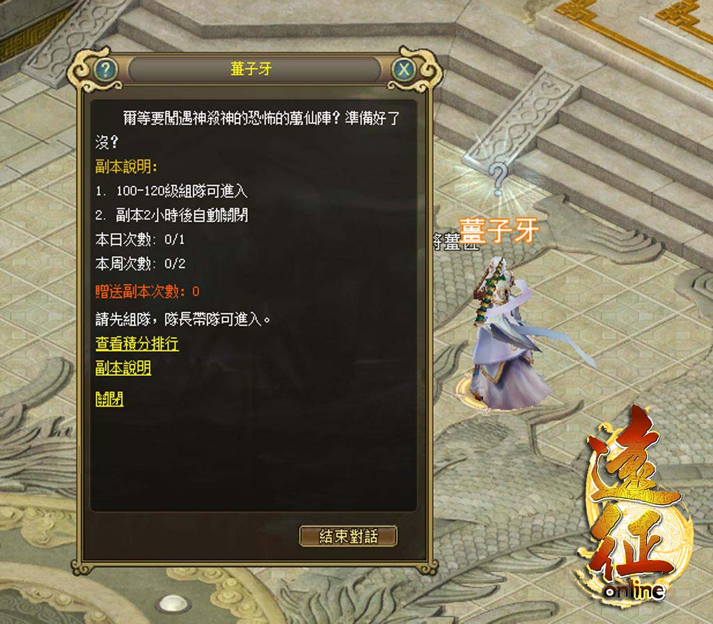 進入「萬仙陣」副本的畫面