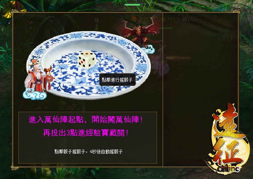 「萬仙陣」副本由一系列小關卡組成,以大富翁方式依據擲骰子的結果來決定關卡和事件