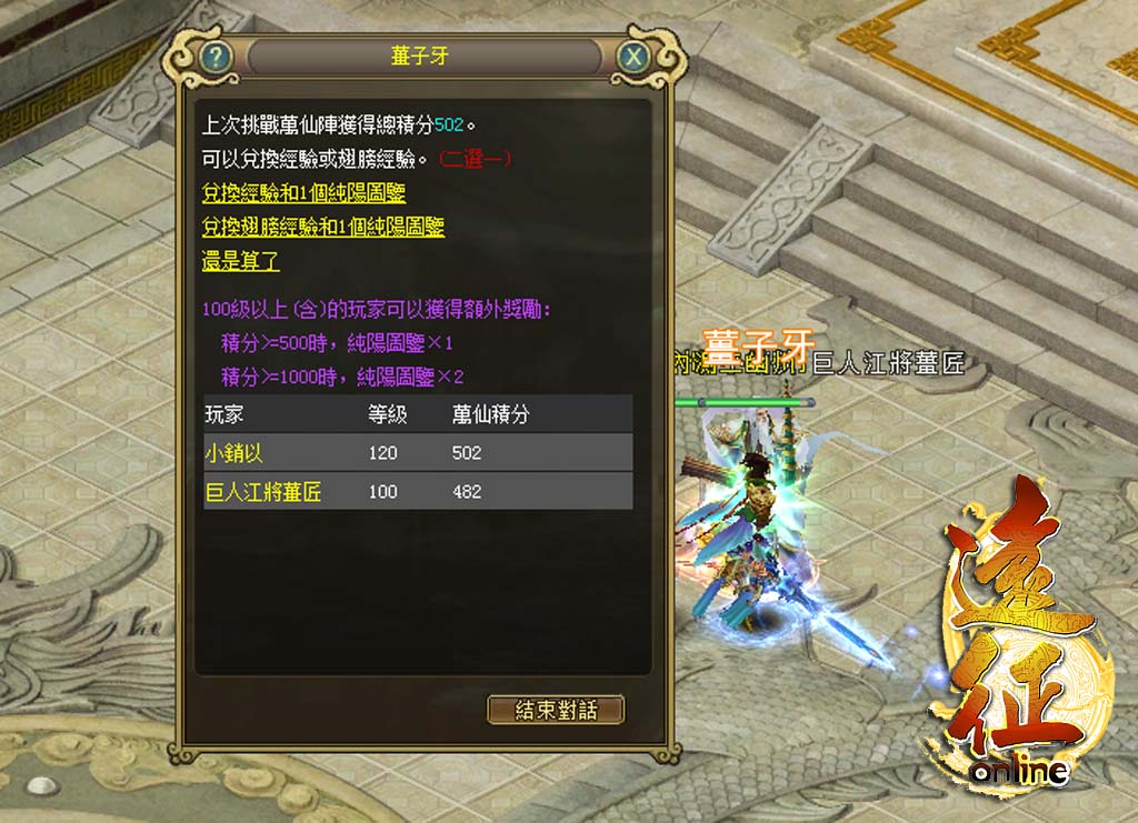 副本結束後積分達500以上,還可額外兌換獲得純陽圖鑒