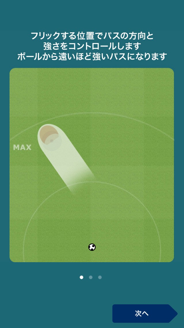 要傳球給我方隊員時,從離球越遠的位置進行滑動操作的話力道就會越強。另外,除了可以利用左右的滑動操作來使出曲球之外,往下方滑動就可以使出倒旋球,向上滑的話就是直球。