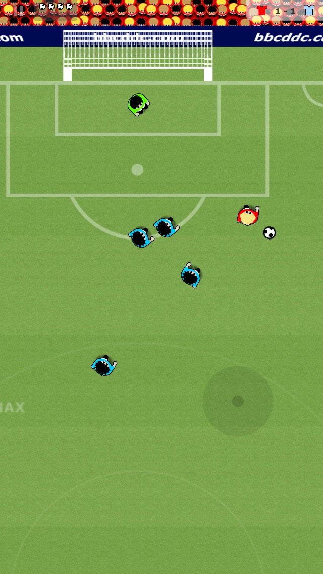 在畫面下方會顯示圓形的線,在這個區域中進行滑動操作的話就可順利傳球。而畫面上方會有球門以及敵方球員,玩家要小心的傳球。
