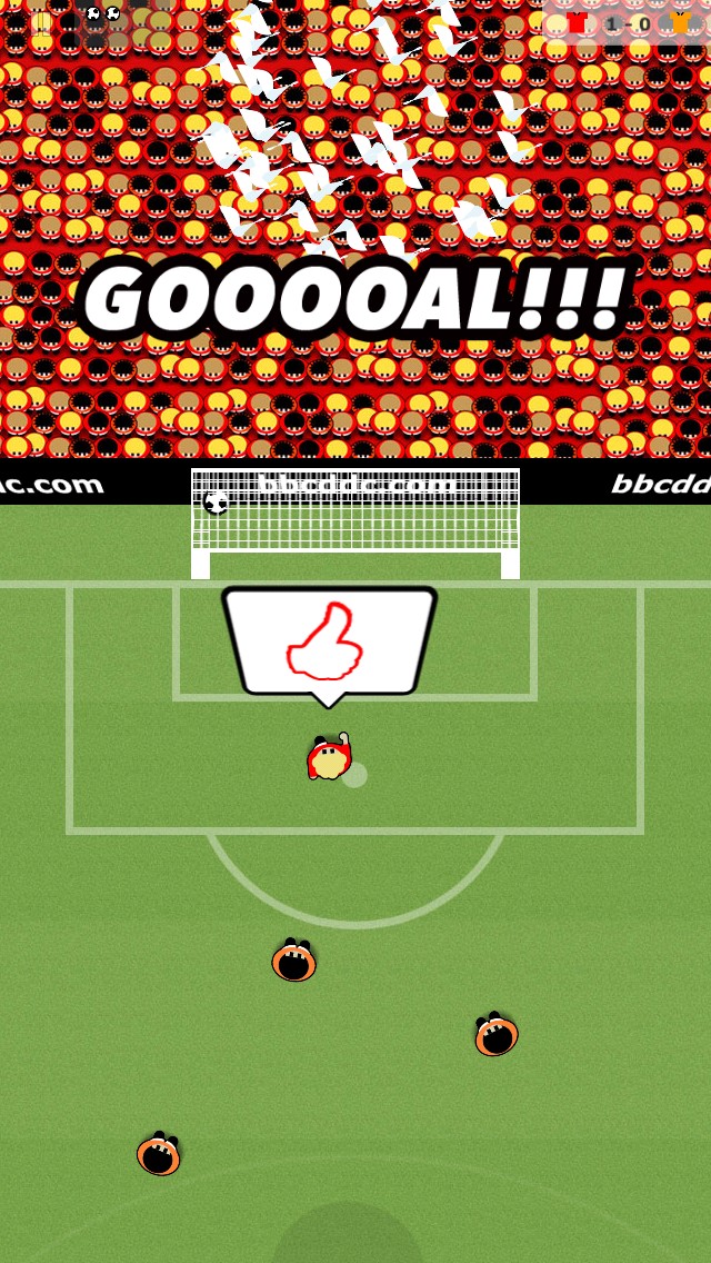 遊戲中必須確認敵方的位置,預測我方奔跑的位置,選擇傳球的威力跟種類,還滿要求玩家正確判斷力的。遊戲中雖然有時守門員會掉球,或者傳球成功但我方球員射門失敗等的運氣成分,但成功攻略看起來絕對沒辦法過關的關卡時,心情會感到滿爽快的。
