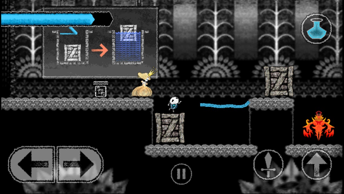 在本作中,玩家必須分別運用「骷髏人」跟「帥哥」這兩種不同的能力,並用拖曳的操作方式來運用粉筆動作來解開各種機關。