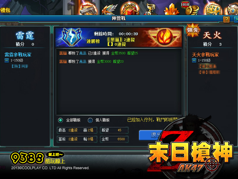 痛快廝殺「陣營戰」活動狂爆登場,玩家可以在此累積大量聲望的重要途徑,要想多拿到聲望就要在「陣營戰」發揮自己的最大實力。活動時間每日 19:30~20:00。玩家分為兩個陣營進行對抗,報名參加的玩家,系統會隨機分配玩家到一方陣營。如果玩家想要獲得這場陣營戰的勝利,就必須擊殺敵方營隊獲得陣營積分才能取勝利;抱著必勝決心、陣營榮耀,成為最強軍團。