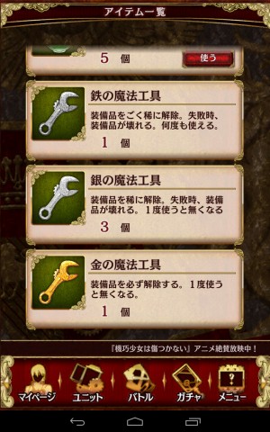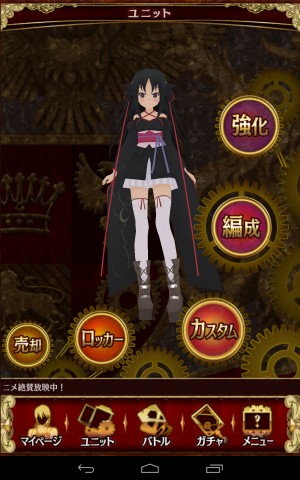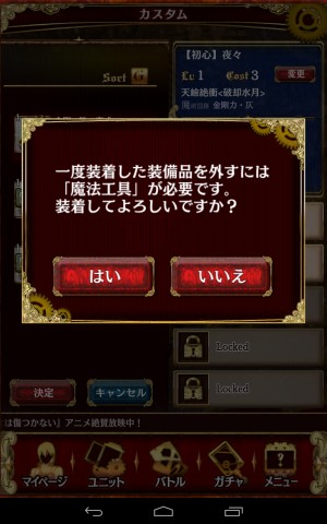 而「自訂(カスタム)」就是裝備強化裝備的地方,不過在本作中只要一裝備上去,就不能自由的取下裝備,除非使用魔法工具才能夠取下。