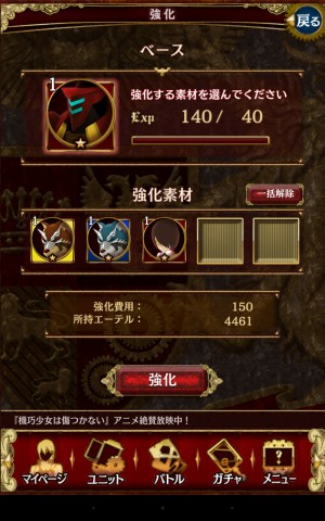 本作的「強化」要素跟其他遊戲並無太大的不同,就是先選擇想要強化的裝備/自動人形,再選擇當作強化素材使用的裝備/自動人形即可。而「編成」就是編制玩家在戰鬥中想要使用的角色以及輔助技能,而編制 COST 會隨著升級慢慢增加。