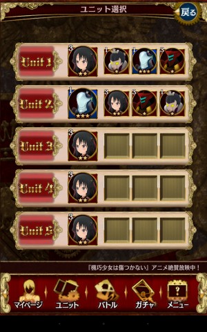 當戰鬥結束後就會回到個人頁面,在此可看到所使用的自動人形,以及剩餘 BP(行動力)以及經驗值表。