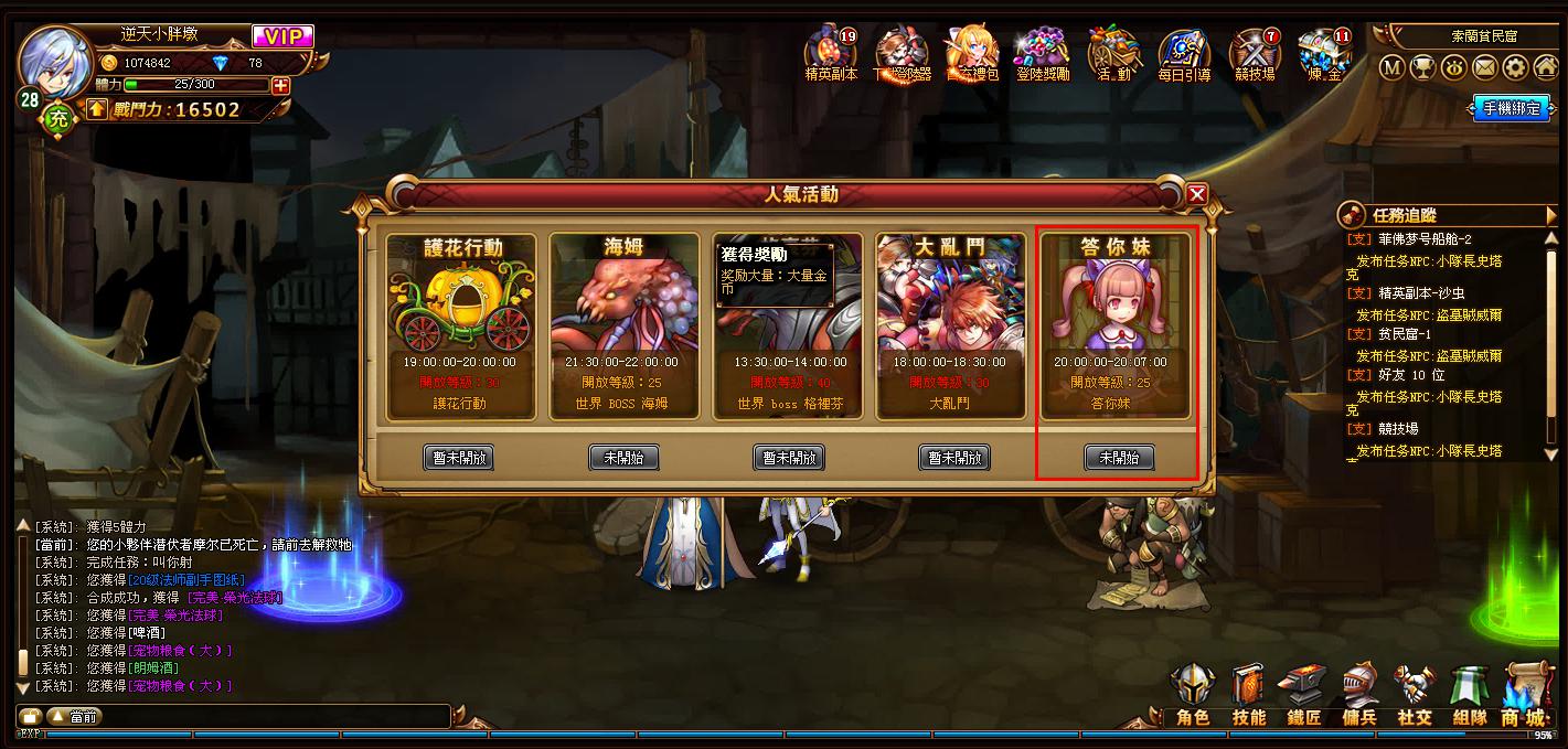 龍之紋章》“答你妹”每天開啟時間為 19:00 - 19:30,總共有 20 題可以作答,玩家每答對一道題,會獲得一個能量塊,當達到 4 個能量塊時,可以獲得一次雙倍獎勵的機會。答題得分越高,則產出經驗、金幣就越多。