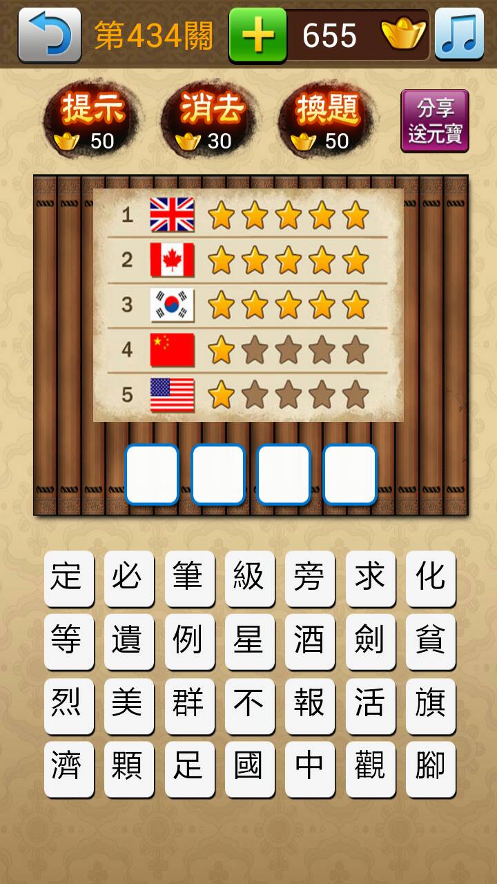 成語大挑戰》,首月下載數就超過 25 萬次,期間不僅在 Google Play 拿下竄升最快排行第一名與最新熱門免費第三名,三個多月來更累積超過 2.6 萬個五星評價,遊戲熱門的程度連開發者都為之驚嘆。