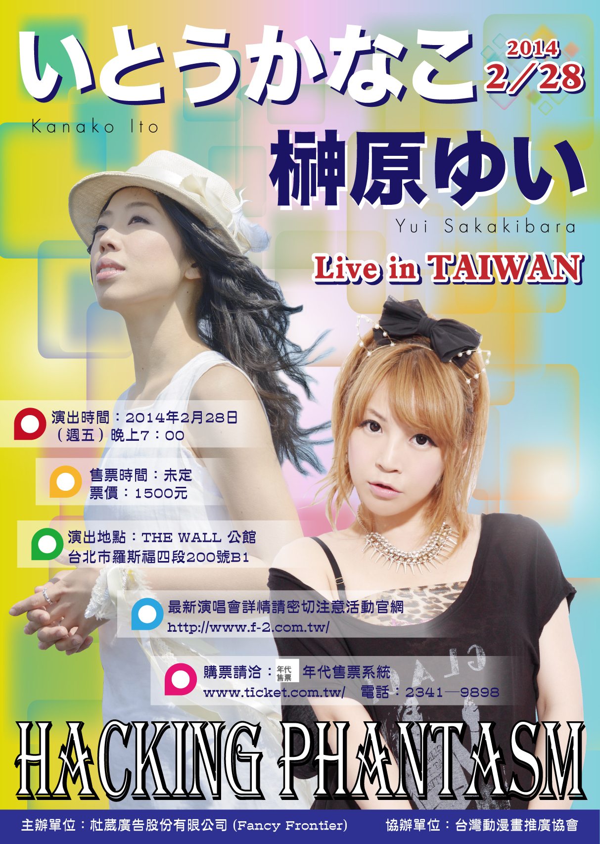 開拓動漫宣布,日本知名動畫遊戲歌手「伊藤香奈子(いとうかなこ)」與「榊原由依(榊原ゆい)」,將於明(2014)年 2 月 28 日攜手登台舉行演唱會「いとうかなこ&榊原ゆい Live!~Hacking PHANTASM~」。