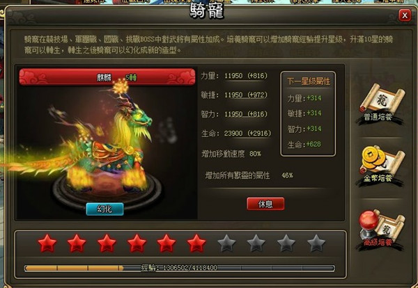 戰鬥力賦值,助力玩家橫掃三國。此外,六階座騎「火麒麟」