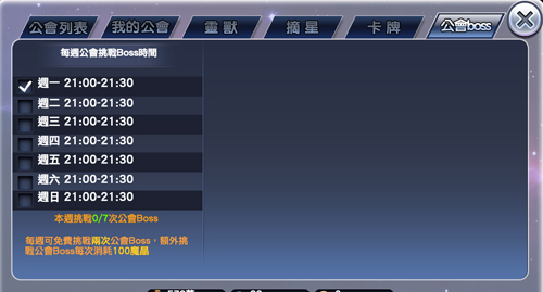 另一新系統「公會 BOSS 戰」,需公會達 4 級以上才會開啟,並由公會會長掌握權限,設定 BOSS 戰挑戰時間。