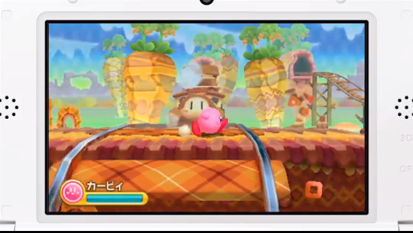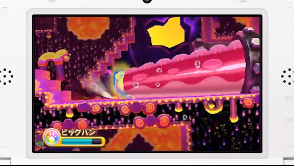岩田先生也在影片中稍微介紹了一些遊戲畫面。為了攻略眼前的關卡與特定的場所,使用強化過的複製能力「吸取(すいこみ)」。除了另外新增加的四種複製能力之外,也裝載了迷你遊戲「卡比鬥士!(カービィファイターズ!)」與「Dedede 大王傳~記(大王のデデデでデ~ン)」等內容。此篇報導也刊載了擷取畫面,希望各位玩家一探究竟吧。