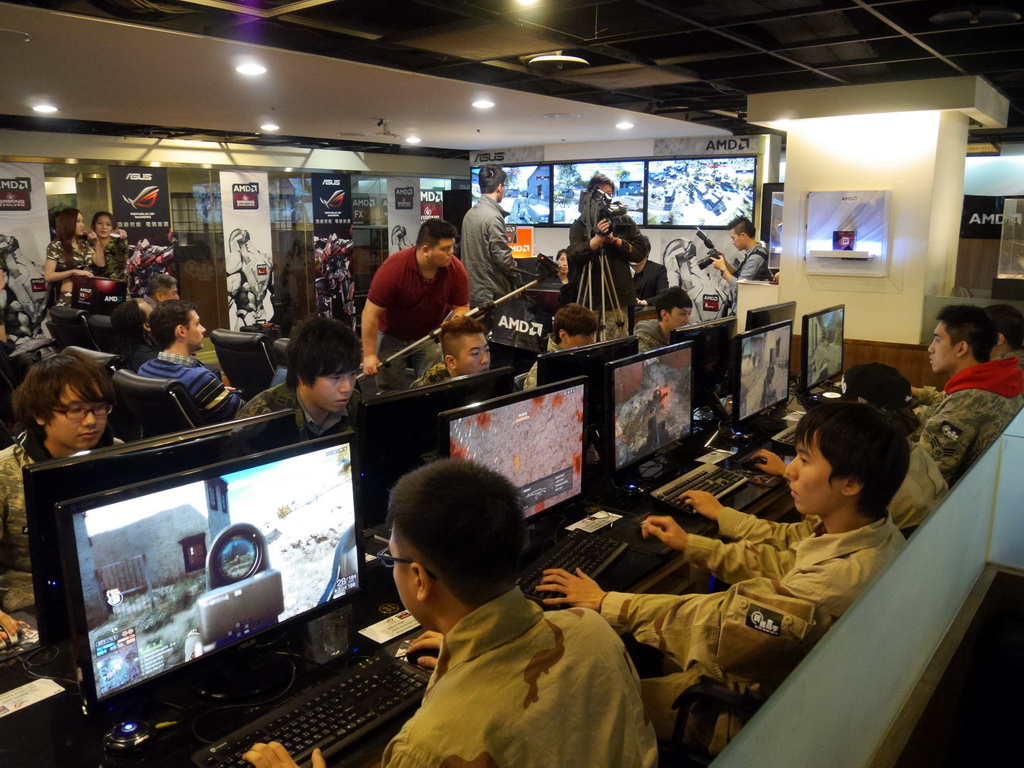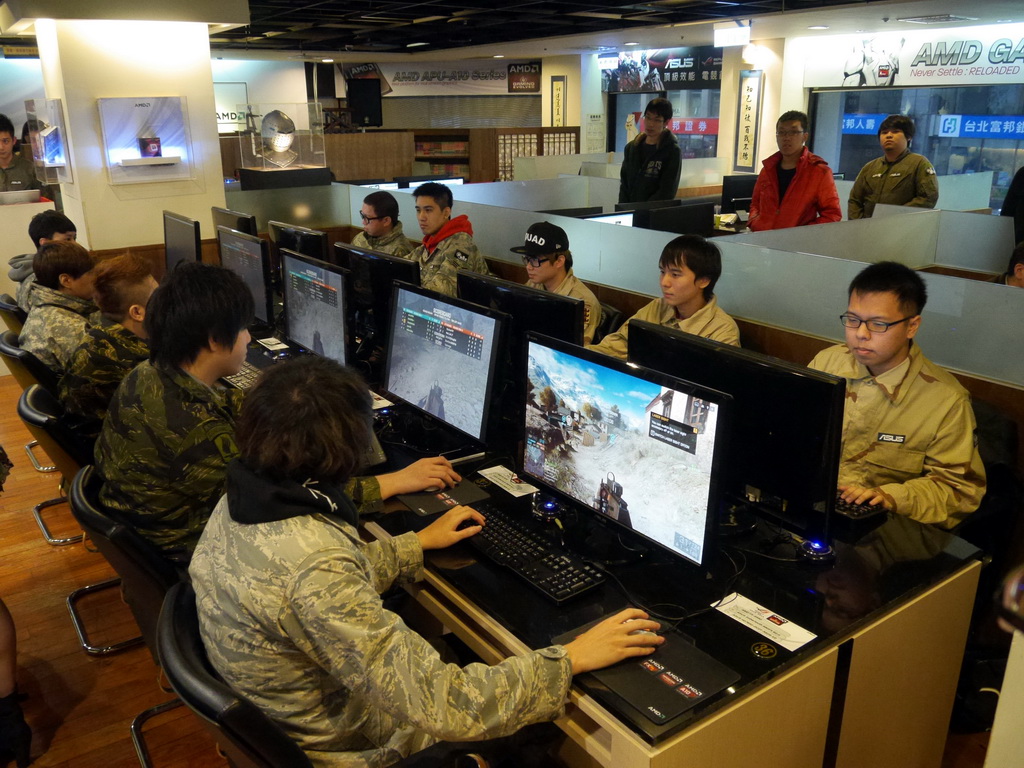 戰略高手南京店、佔地 120 坪,現場共有 50 台配有 AMD 與華碩電腦配備的主機,搭配「暴雪 AMD 夢想聯賽」與「Never Stttle 遊戲搭售方案」等遊戲。