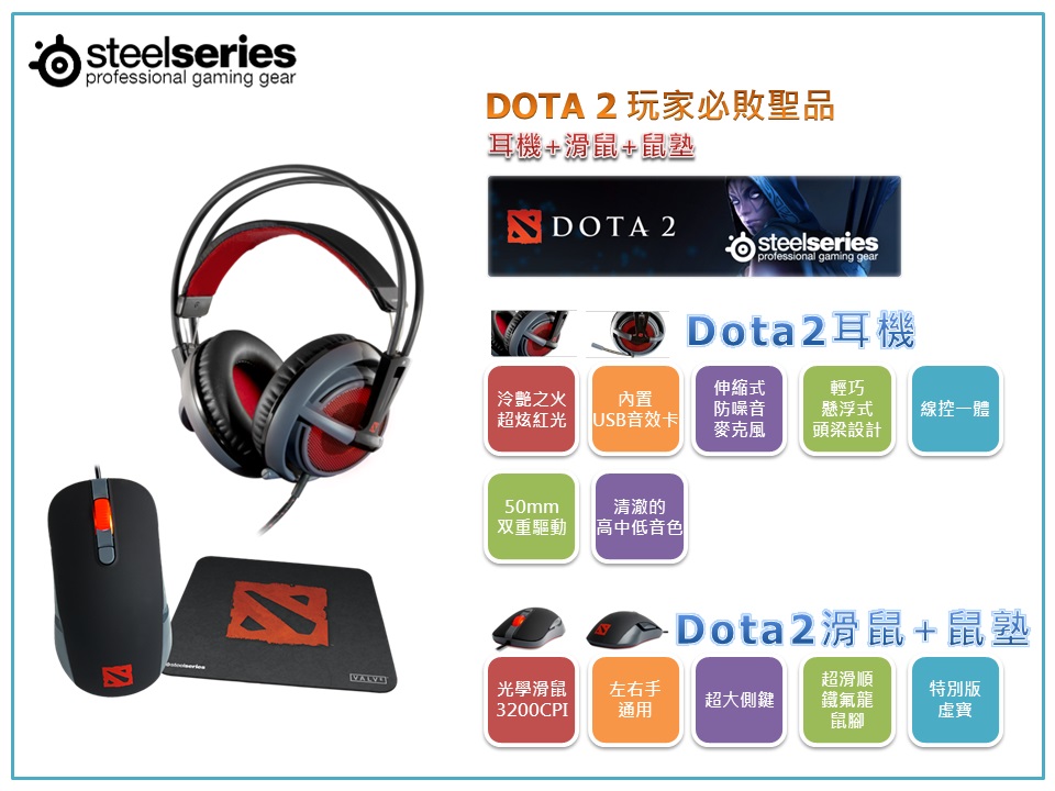 西伯利亞 V2 耳機 <DOTA 2 特別版>的設計元素來自於遊戲中神話物品 - 先知的邪惡鐮刀,外型以富科技感的鐵灰色設計、搭配耳罩中的 DOTA 紅色發光體 (透過驅動將具有多種不同的發光模式),呈現出獨有的科技時尚感。該款耳機同時附贈 DOTA2 獨家珍貴虛擬寶物。