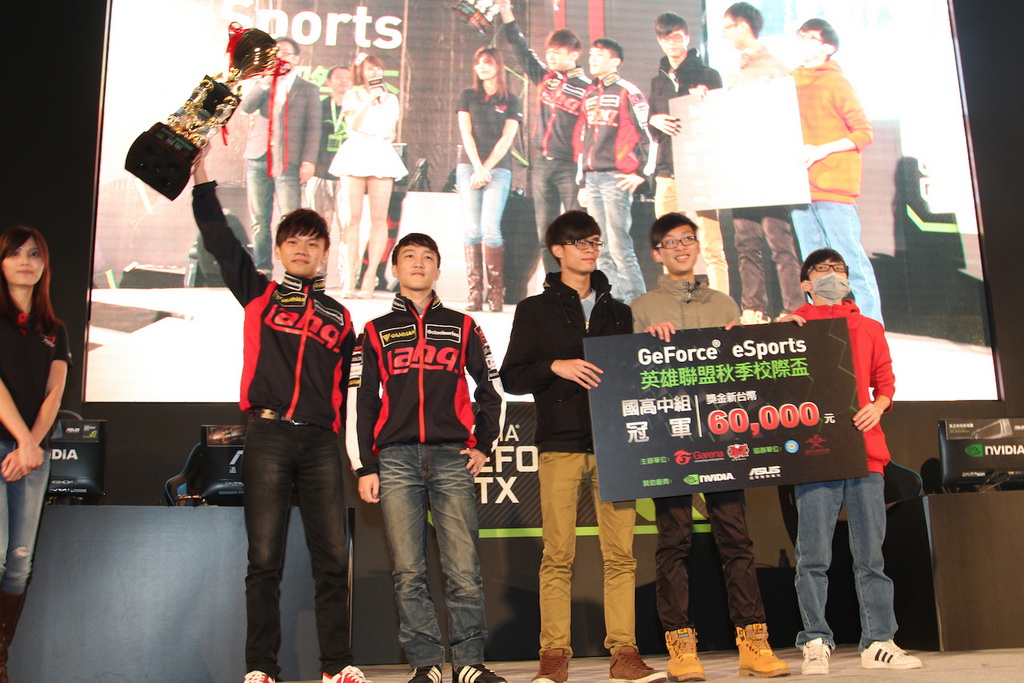 在國高中組的賽事當中,具有兩名 ahq e-Sports Club 選手蘭特及小汪的「私立莊敬工家 – JJvs.」在冠軍爭奪戰中展現了十足的霸氣,一路逼著對手「私立大明高中 – 哪裡都是妳」無法反擊,在對戰開始的 10 多分鐘左右即將經濟差距拉開到一萬,也完全壓制對手英雄的成長,以幾近虐殺的姿態取得直落二的勝利。隊長 eMpEroR 噯恋也在得冠之後發表感言:「希望國內能夠有更多學校及更多隊伍投入像 GeForce® eSports《