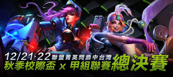 英雄聯盟》秋季校際盃」,自今年 9 月起進行為期八週的線上初賽,最終晉級總決賽的名單,大專組是由「國立虎尾科技大學 – 虎尾科技大學」以及「國立台灣海洋大學 – Ntousix」晉級,而國高中組則是「私立大明高中 – 哪裡都是妳」以及「私立莊敬工家 – JJvs.」,於今(21)日集結於台中逢甲大學,爭奪成為《