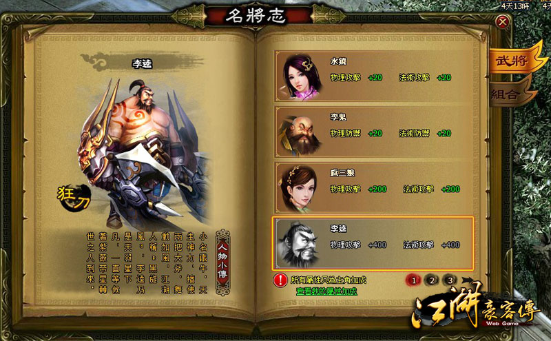 當玩家等級達 33 級時,由上角會出現一本名將志,裡面將會詳細記錄《