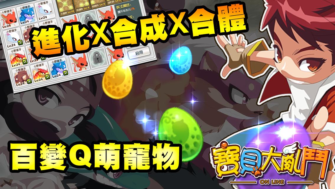 寶貝大亂鬥》是以寵物「進化」、「收集」與「養成」為主題的手機遊戲,內建超過數百個可愛的寵物供玩家收集,此外還有多種造型寵物裝備可讓玩家自由搭配。官方表示,遊戲不僅有刺激的寵物對戰機制,還有獨特的寵物群 P 戰鬥模式供玩家體驗。