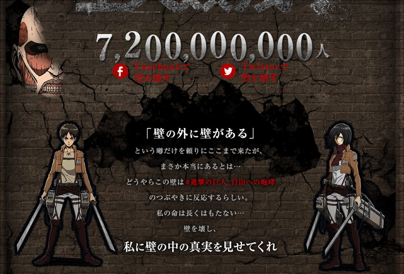 看來這道牆會對「#進撃の巨人_自由への咆哮」這樣的推文(Tweet)有反應的樣子。
