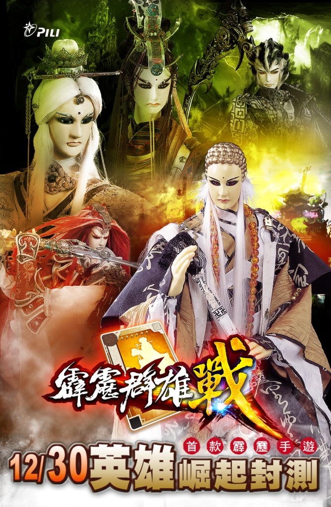 由霹靂國際多媒體授權,智冠集團旗下智樂堂網路股份有限公司自主研發、營運《霹靂群雄戰》是結合行動裝置與霹靂布袋戲元素的卡牌手機遊戲,預定在 12 月 30 日起展開「英雄崛起封測」。此外官方也透露遊戲將於 12 月 28 日起現身於「霹靂奇幻武俠世界 布袋戲藝術大展」互動區中供玩家體驗。