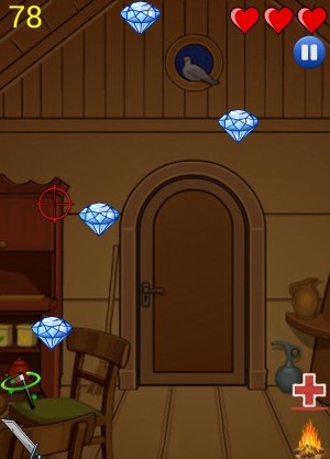 遊戲開始後鑽石就會不斷的掉下來,遊戲規則非常簡單,玩家只要看到鑽石在哪裡就觸碰那裡。左上的數字代表玩家所撿取得鑽石數量,右上的愛心代表可失誤的次數,當玩家沒有撿到鑽石掉落到最下方時就算失誤,而愛心被扣光時遊戲就會結束,