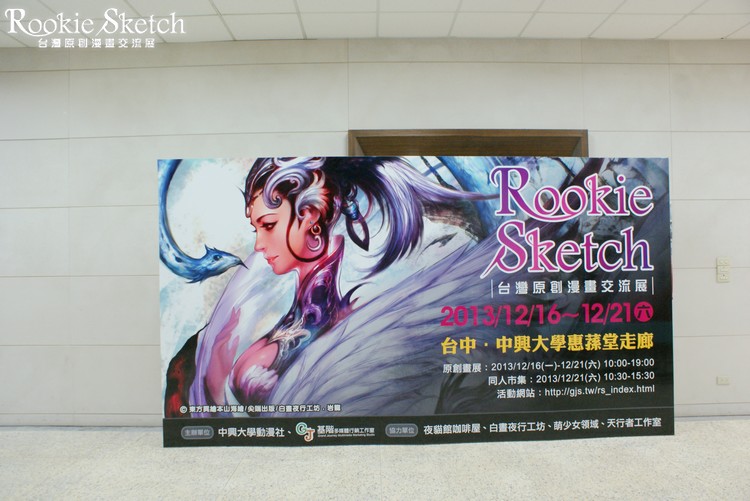 基階多媒體行銷工作室與中興大學動漫社聯合邀請國內知名的繪畫社團:白晝夜行工坊、夜貓館咖啡屋、萌少女領域以及天行者工作室,於 12 月 16 日(一)至 12 月 21 日(六)在台中地區中興大學惠蓀堂走廊舉行「Rookie Sketch 台灣原創漫畫展」,在展期最後一天結合原創同人市集與專家講座,吸引上千人次參觀全台原創繪者展出獨立出版品與畫作。