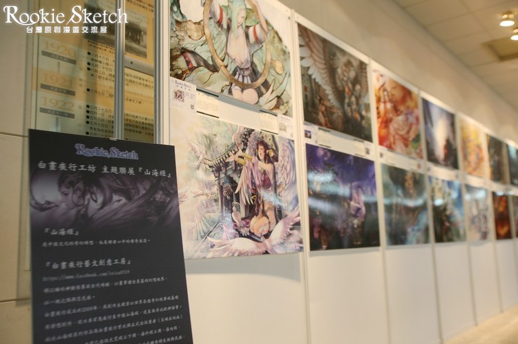 從同人獨立出版跨足商業刊物的「白晝夜行工坊」聯合旗下 30 餘位繪師舉行山海經主題聯展;個展方面邀請到夜貓館咖啡屋的旅美繪師 毅峰及萌少女領域的中國繪者 RA;在台中地區深耕漫畫教學的「天行者工作室」也參與此次畫展。