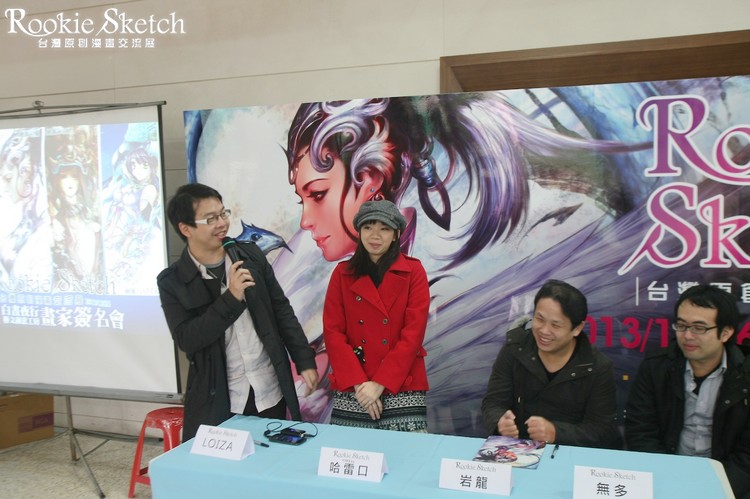 白晝夜行工坊繪師簽名會,參與繪師:LOIZA、HAREKO、岩龍、無多(順序左至右)