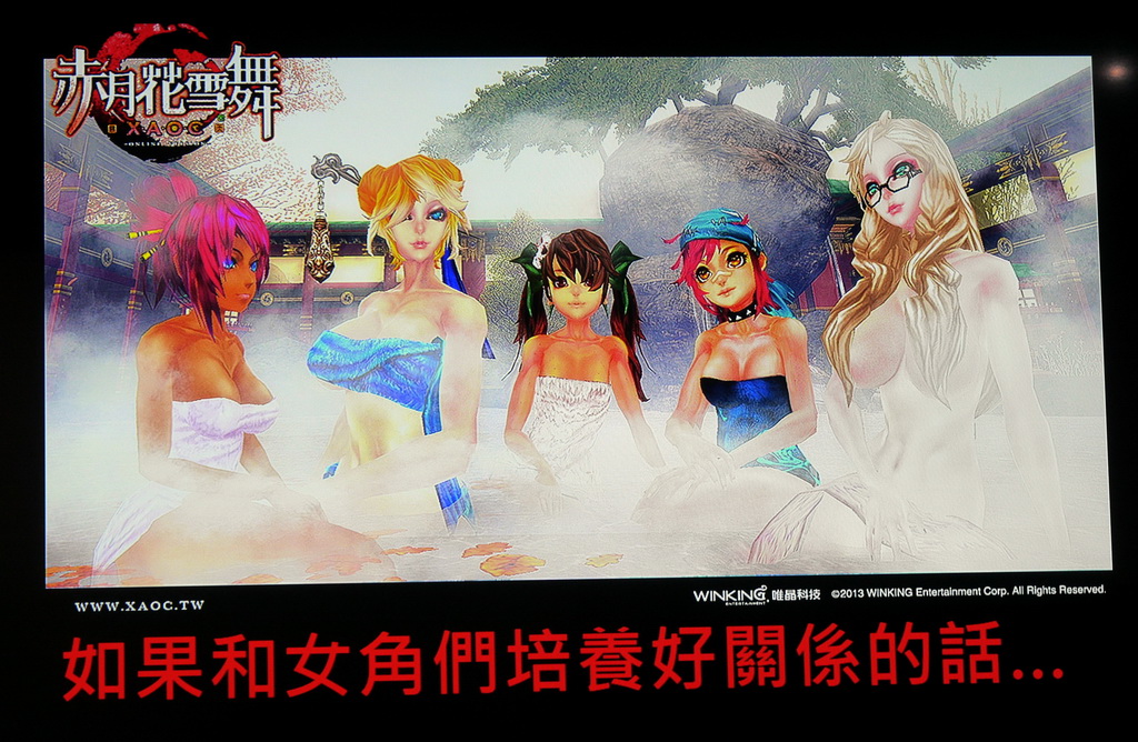 現場也以「裸湯!?」來預告此次改版將讓玩家提升與 NPC 關係,眾多女角 NPC 如丈藍、燕子、娠罔市、夏卡塔莉朵…等都將於特定時間(遊戲內) 以新造型出現在特定溫泉,玩家除了可與 NPC 一起泡溫泉外,未來還可以在溫泉周邊蒐集特定物品,之後可在租界中用來製作好用的東西,究竟能做出什麼好東西,玩家也可到時在遊戲中體驗。