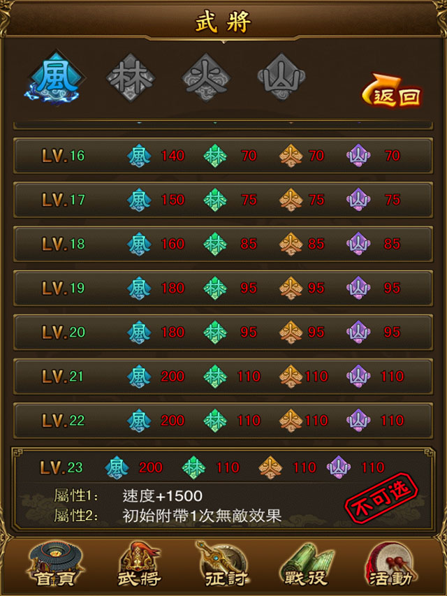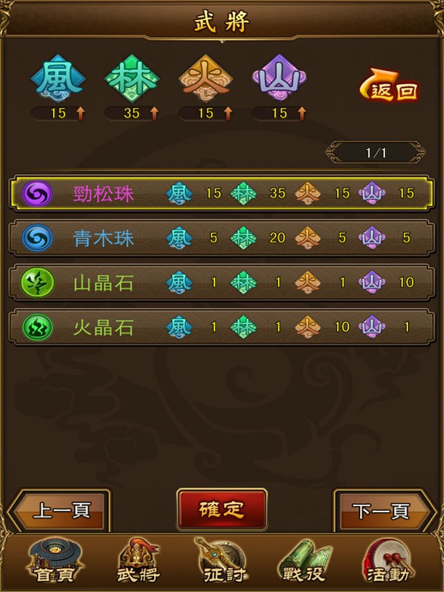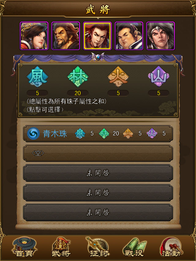 風林火山系統是本次更新中最受矚目的內容,在風火林山系統中,玩家只要等級到達55,就可以在武將界面中開啟。各位官人可以通過收集風、林、火、山四種不同屬性的珠子,當四種屬性數值達到一定的程度,就可以觸發不同的屬性,獲得全隊單一屬性加成與各種強力的屬性。