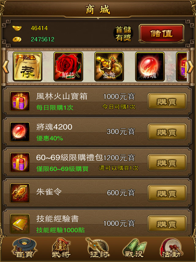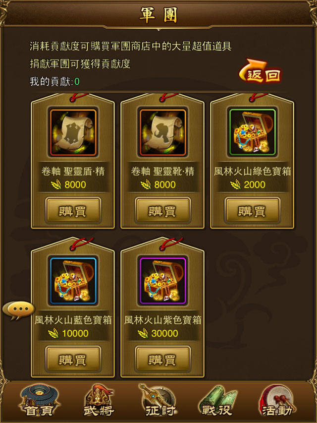 風林火山寶珠的入手也是相當簡單的,除了可以在商城中購買,還可以在軍團商店中使用貢獻值換取,每天舉行的軍團BOSS戰也有機會可以入手!
