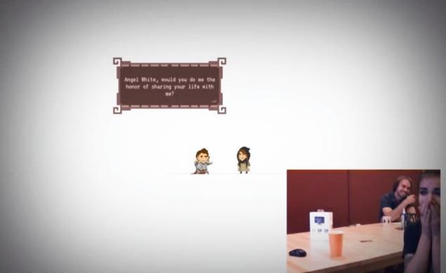 羅伯和他的兩個朋友花了 5 個月的時間製作這款遊戲,求婚當天,羅伯以公司需要請人試玩遊戲為由,讓安琪到事先裝有攝影機的房間裡試玩,為了不讓她起疑,還特別找來了一名同事在旁詢問關於遊戲的問題,他自己則躲在幕後,準備給安琪一個驚喜,還將雙方的親友安排在附近的房間裡準備慶祝。