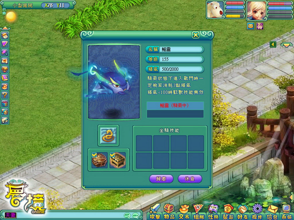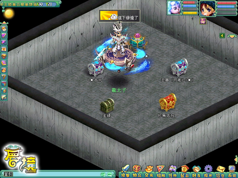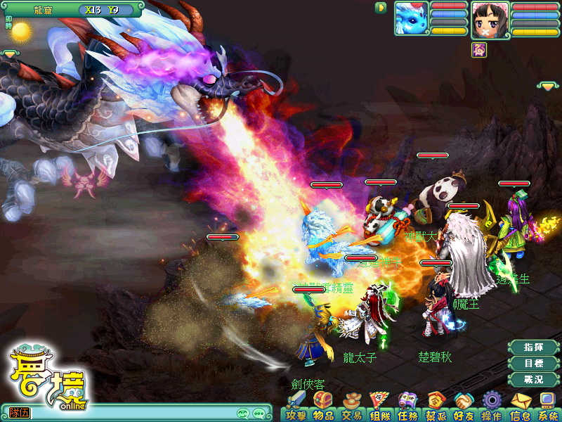 龍王在每回合開始時,有機率性會吐出「龍珠」,當該回合結束時,只要尚有一人殘存在場上,就可向龍珠祈求以獲得各樣珍寶獎勵,為了抵擋龍王猛烈的攻勢,所以戰鬥前一定要請各方俠士準備好仙丹妙藥才行。若可在時間內打敗龍王,將會有滿滿的寶箱,灑落在龍洞內犒賞各方英勇俠士,另外戰鬥評分前十名的隊伍,還可額外獲得神獸之靈等超值好禮,以感謝貢獻最多的俠客們。