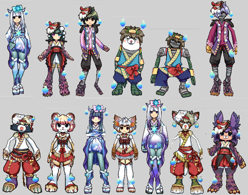 搭配充滿挑戰性的幽靈屋敷新地圖推出的紙片人全新系列套裝,是研發團隊以著名的日本鬼怪鴉天狗、九尾狐、河童、狸妖等鬼魅,而設計出的獨特應景服裝,每一套都富有日本傳統風格,相信一上市就將成為所有紙片人角色的熱門服裝。