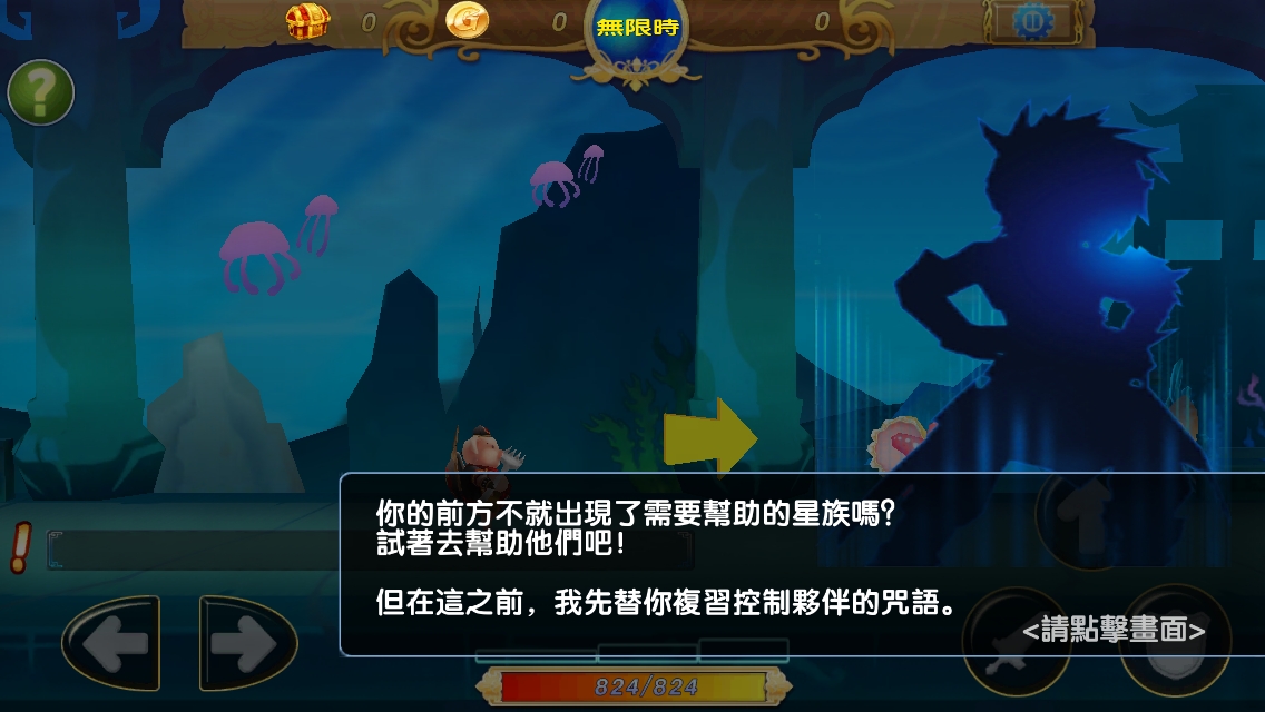 選完主角後很快就進入了新手關卡,遊戲不但有簡單的劇情,還有很貼心的操作教學影片,讓新手可以很快的就了解整個操作。