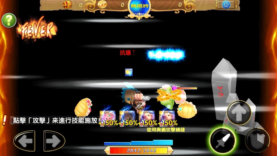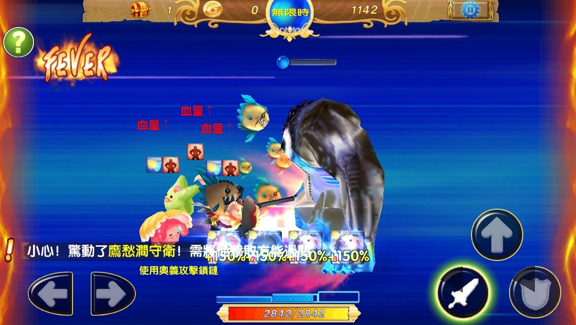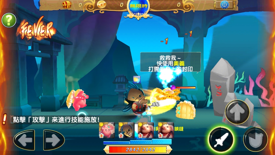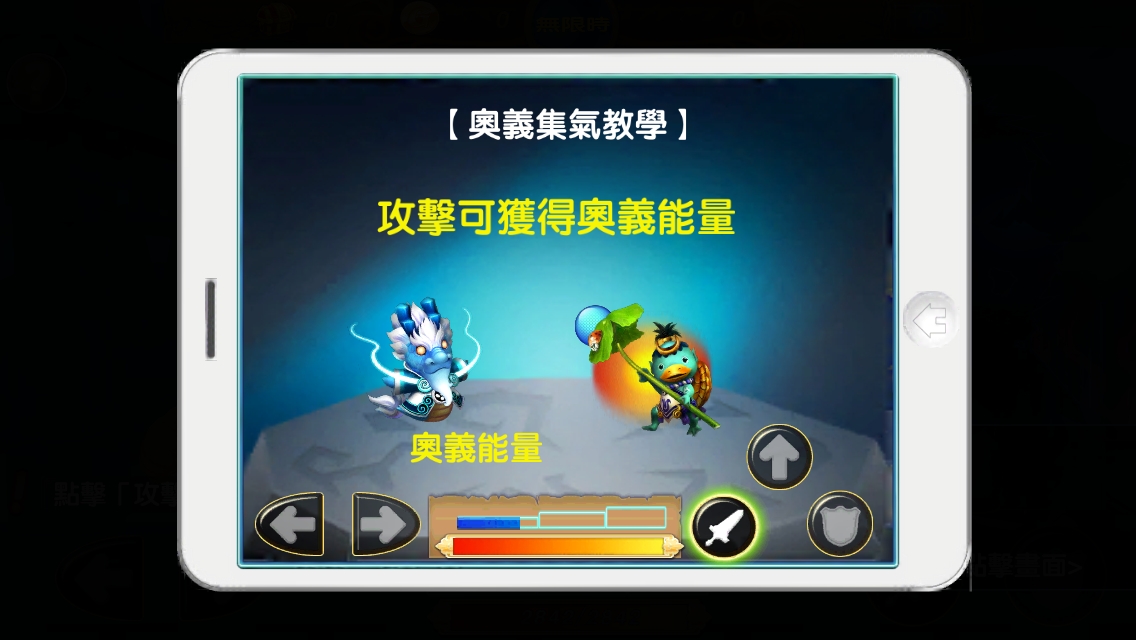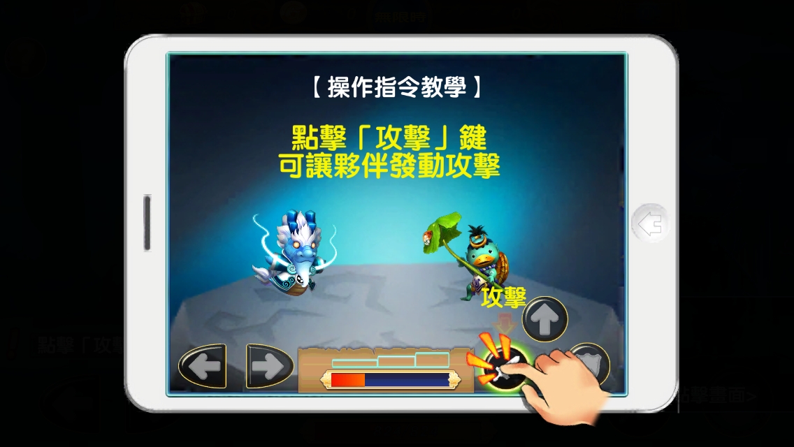 進入戰鬥主場畫面後,可以清楚看到右下角的操作提示,只要進行攻擊,就能累積奧義能量。奧義能量只要一滿,就會跳出寵物頭像,玩家可以點擊寵物頭像來進行奧義攻擊。