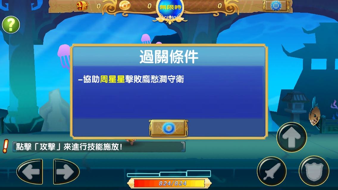 使用攻擊累積奧義能量時,後面的周星星還會貼心的提示玩家,可以使用防禦補血呢!